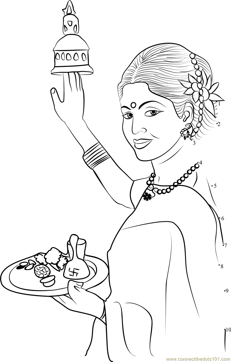 Hindu Puja Aarti Thali dot to dot printable worksheet Connect The Dots
